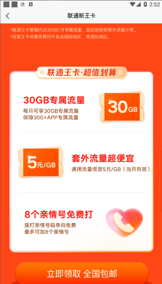 除免流特权外,腾讯王卡还默认开通超值日租宝服务(1元即可获得500MB省内流量),未使用不收费。更令人惊喜的是,成功开通王卡后,用户还可立即获赠价值100元的1GB全国流量半年包,让您随时随地畅享网络生活。