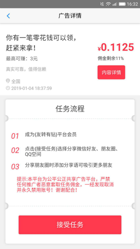 友转有钻广告共享APP诞生于实体商家广告投放困境的市场背景下,通过去中心化传播模式重构传统广告链路。平台运用大数据分析技术,将商家广告精准推送给潜在消费者,同时赋予普通用户成为广告传播节点的机会。这种创新模式既解决了中小商家预算有限、推广难的问题,又为用户创造了灵活的副业收入渠道。