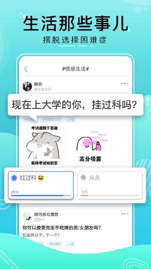 比记社区以"记录每一个态度,解决你的选择困难"为核心理念,打造了一个独特的投票比较平台。在这里,每个用户都可以通过简单的二选一形式表达自己的观点,同时也能看到大众的选择倾向。从"今天中午吃火锅还是烤肉"的生活琐事,到"996工作制是否合理"的社会议题,比记涵盖了各个层面的讨论话题。平台采用直观的数据可视化方式呈现投票结果,让用户一目了然地了解主流意见。