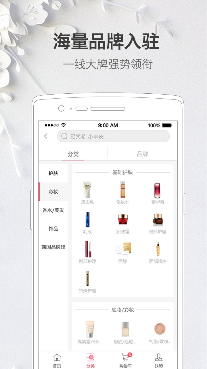 主营模块:商品种类极其丰富,包含10万+精选商品,涵盖海外一线化妆品、高端护肤品、轻奢品牌、精品香水、时尚配饰、名表珠宝、智能电子产品等。平台每周上新数百款潮流单品,满足不同消费者的个性化需求。