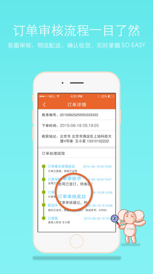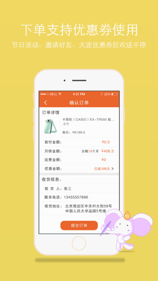 3.优化下单流程,简化为点击分期、完成资料、确认订单三个步骤,操作更加流畅;