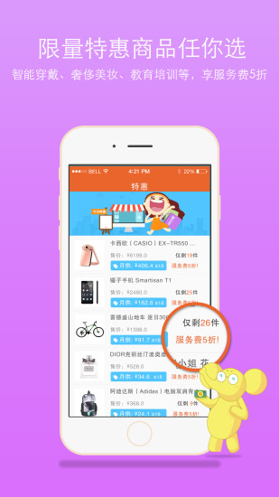 99分期是一款专为大学生量身定制的分期购物平台,致力于为年轻群体提供便捷的消费金融服务。平台涵盖丰富的商品品类,包括智能手机、笔记本电脑、平板电脑、数码相机、耳机等3C数码产品,以及潮流鞋包、驾校培训等多元化服务。所有商品均保证100%正品,与品牌厂商直接合作,确保品质无忧。平台提供最高3000元的现金取现服务,极速到账,并支持20余家主流银行网银、支付宝、财付通等多种支付方式,让还款变得轻松无忧。无论是想购买心仪数码产品,还是需要短期资金周转,99分期都能满足你的需求。