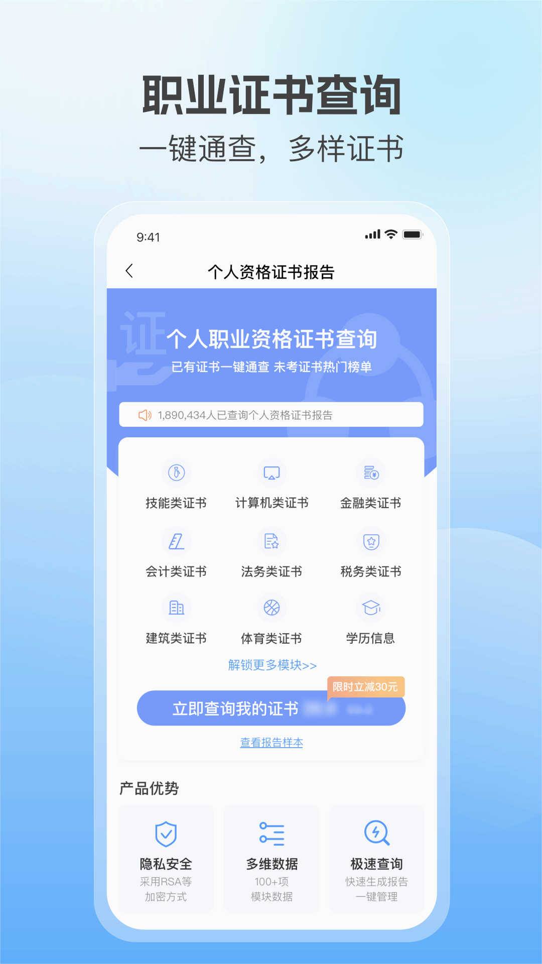 一键查询个人职业资格证书,支持各类职业资格认证查询,包括教师资格证、医师资格证等主流证书,验证过程简单快捷。