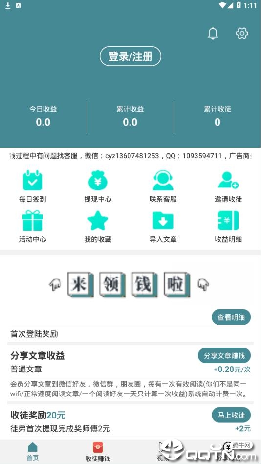 新用户福利:注册即送1元现金红包,首次登录再奖励1元,只需完成3条有效阅读即可提现。