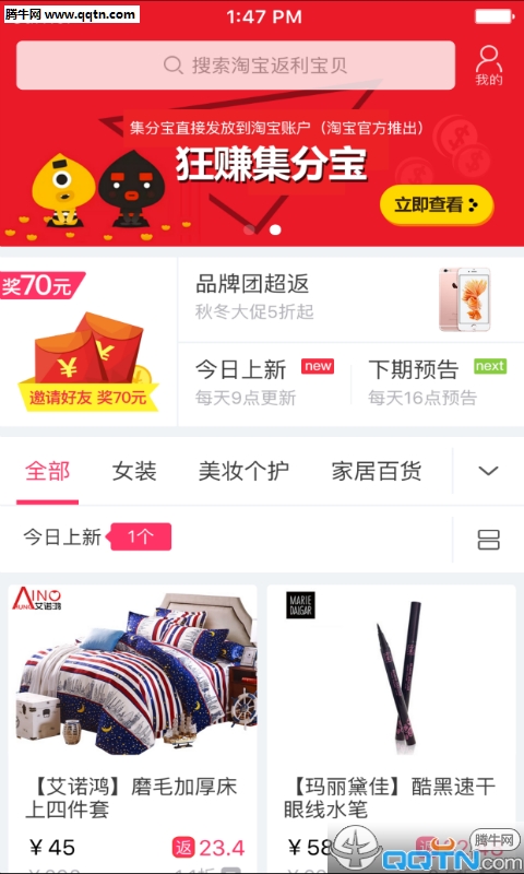 钱咖返利APP已经成为超过八千万女性用户的网购首选工具,凭借其强大的返利功能和丰富的商品资源,帮助用户实现钱包不瘦身的购物梦想。在这里,您可以轻松搜索到全网优质商品,享受无需讨价还价的优惠价格,每天都能发现新的折扣惊喜。更重要的是,钱咖返利与几乎所有知名电商品牌建立了深度合作关系,部分商品的返利比例甚至高达商品价格的95%,让您的每一分钱都花得更有价值!