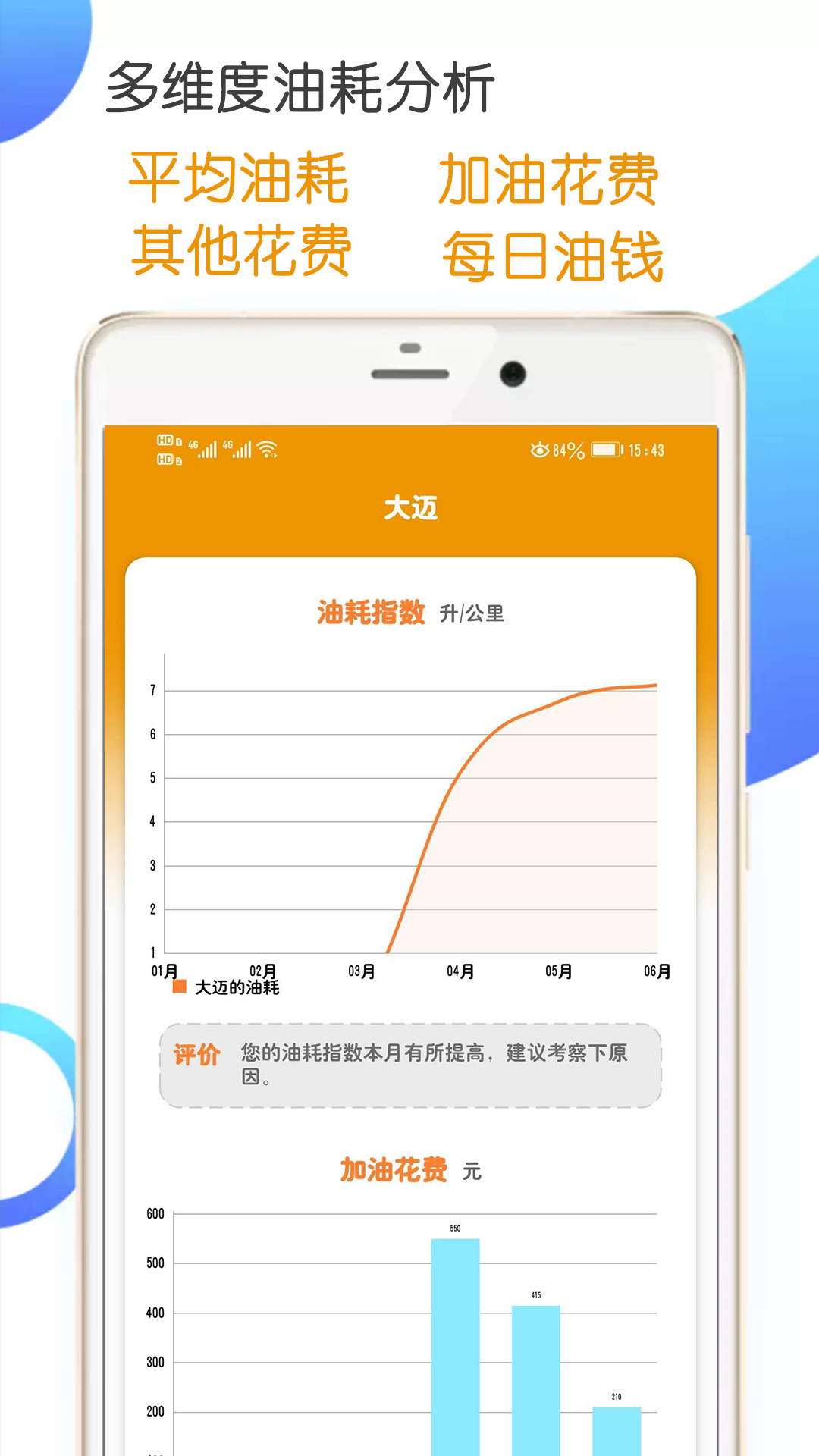 多端同步:数据云端存储,手机更换也不怕,随时随地查看您的加油记录和油耗数据。