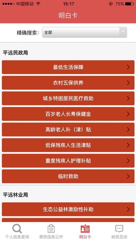 个人信息查询:用户可随时查询个人享受的各类惠民政策及资金发放情况
