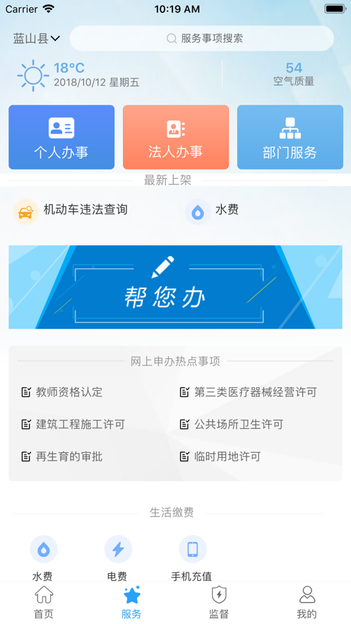 个人办事、法人办事、部门办事。为您提供贴心的办事指南。每个办事事项都配有详细的办理流程说明、所需材料清单和办理时限,并支持在线预约和进度查询,让办事过程更加透明高效。