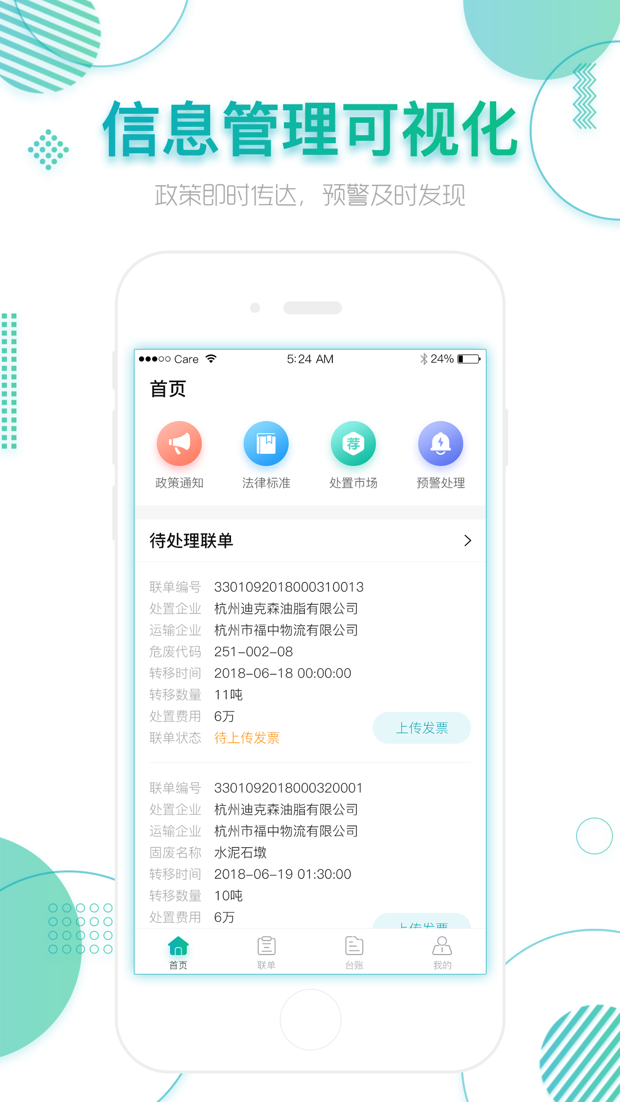处置管理:支持固废处置全流程电子化管理,包括联单开具、运输跟踪、处置确认等。