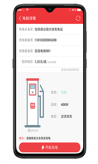 恩逸电桩app采用先进的定位技术,确保充电站位置信息准确无误;充电站预览页面设计简洁明了,功能布局合理;充电站详情页提供完整的充电桩信息,包括功率、收费标准、使用状态等;支付系统安全可靠,支持多种支付方式,让充电支付更加便捷。