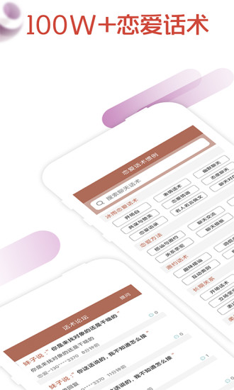 内置百万级话术库,让你彻底告别学习聊天的烦恼!你是否经常遇到这样的情况:学了很多聊天技巧却不会运用,背了不少话术转眼就忘?现在只需使用"搜索-复制-粘贴"三步操作,就能获得专业级回复内容,实现秒回不冷场。女朋友会为你的及时回复而感动,认为你是真正在乎她的人。此外,应用还特别设置了问答社区功能,汇集了众多专业恋爱顾问和资深用户。当你遇到棘手的聊天难题时,可以直接将对话内容提交到社区,获得专业人士的实时指导和建议,让你的每句话都能打动对方的心。