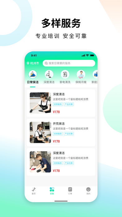多样服务:平台整合了家政服务领域的全方位服务项目,从日常保洁到专业维修,从收纳整理到老人陪护,满足不同家庭场景下的多样化需求。所有服务人员均经过严格背景审查和专业培训,确保服务质量和安全性,让用户用得放心。