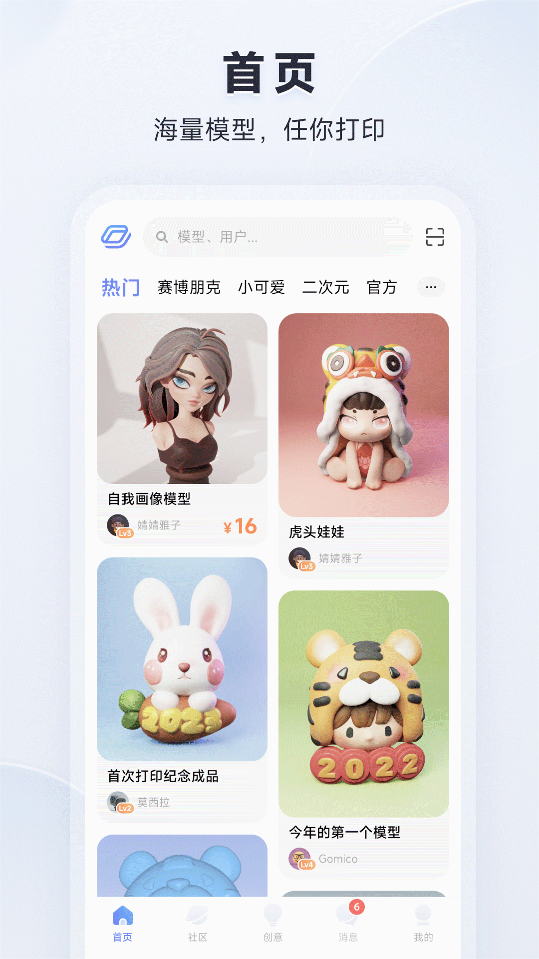 作为国内领先的3D打印内容平台,米家3D打印APP致力于打造一个集内容分享、技术交流、创意实现于一体的专业社区。平台拥有超过10万+的优质3D模型资源,涵盖动漫手办、家居装饰、工业零件、创意玩具等多个领域。同时,APP还配备了完善的创作工具和详尽的官方教程,从基础建模到高级渲染,帮助用户逐步掌握3D打印技术,让每个人都能轻松享受创造的乐趣。