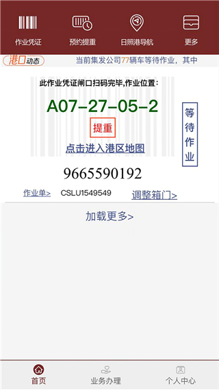 汽运司机获得进港作业资格后,可通过扫描电子凭证二维码快速进入港口作业区。系统会智能匹配作业任务,通过领路人导航软件精准指引至指定垛位,同时提供实时作业进度更新,确保集疏港作业高效有序进行。