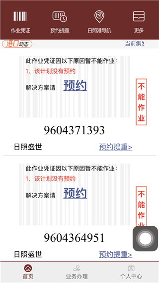 入港作业凭证接收