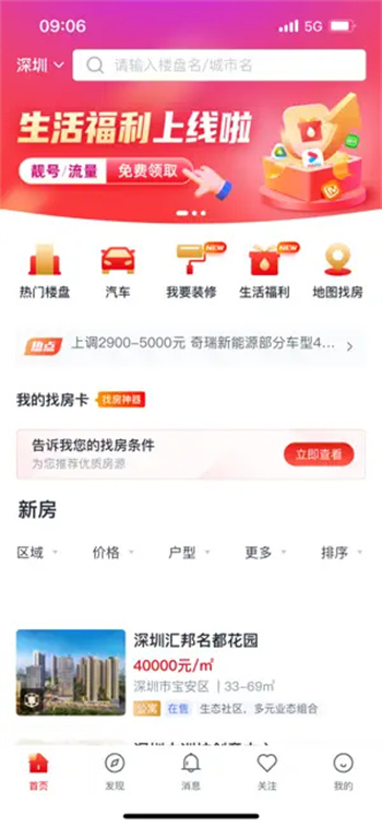 下载安装后,用户只需通过手机号快速注册即可解锁全部功能。内置的智能搜索框支持输入城市名、楼盘名称或汽车型号,系统会根据关键词自动匹配相关资源,并提供详细筛选条件。对于购房需求,热门楼盘专区可一键切换所在区域,展示当前最受关注的房源信息,包括单价、周边配套及交通路线等核心数据。此外,地图找房功能结合多维度筛选(如价格区间、户型结构、建筑面积等),让用户轻松定位理想住所,同时支持收藏对比功能,方便后期决策。