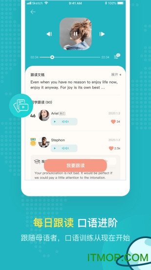 专业的口语练习,英文听力练习,跟外国纯外教1v1真实对话。轻松学习纯正的英语。平台独创的语音识别技术可以实时分析发音问题,并提供专业纠正建议,帮助用户快速提升口语水平。