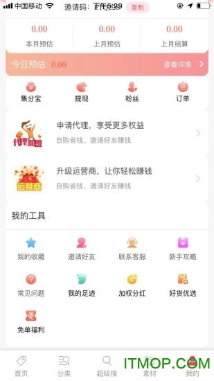 邀请赚钱-发展下级代理团队,邀请好友注册成为您的粉丝,粉丝及其推荐用户的所有消费,您都能获得相应比例的分成奖励,团队规模越大收益越高。