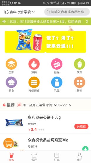 学校购物云购方面:精选校园周边优质商品供应商,严格把控商品质量,从下单到收货最快30分钟完成。平台定期推出学生专享折扣活动,更有积分兑换好礼等福利。