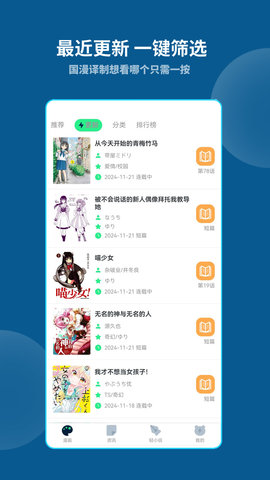 再漫画是一款专为漫画爱好者设计的创作与阅读软件,致力于为用户提供便捷的漫画制作和沉浸式的阅读体验。无论是专业漫画家还是业余爱好者,再漫画都提供了丰富的工具和资源,帮助用户轻松绘制、编辑和分享自己的作品。同时,软件内置海量正版漫画资源,支持高清阅读和个性化推荐,满足不同用户的阅读需求。再漫画还注重社区互动,用户可以加入讨论、分享作品,与其他漫画爱好者交流心得,打造一个充满活力的漫画创作与分享平台。
