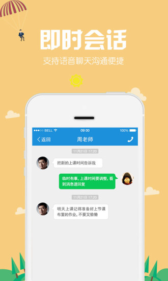 聊天功能:集成专业的即时通讯工具,支持文字、语音、图片等多种沟通方式,师生可随时交流课程细节,建立良好的教学互动关系。