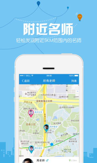 LBS定位:基于精准的地理位置服务,自动推荐距离最近的优质教师资源,并实时显示教师位置信息,让约课过程更加直观便捷。