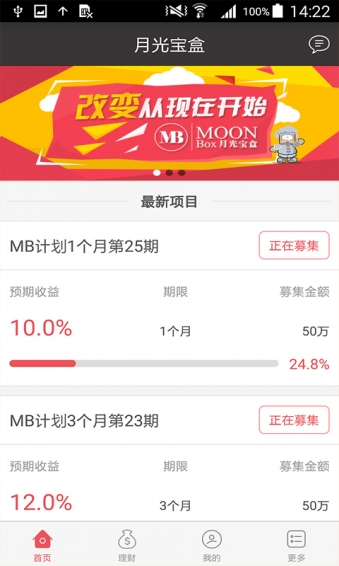 月光宝盒理财app(MoonBox)由盛信恒远投资管理股份有限公司(注册资本1亿元人民币)精心打造,是国内领先的互联网理财交易平台。平台严格遵循国家金融监管政策,采用银行资金托管模式,确保每一笔交易安全可靠。创新的"网络+金融+资产+产业链"模式为用户提供多元化理财选择。平台上线仅七天交易额就突破1000万元,充分展现市场认可度。针对不同投资者需求,平台提供从新手专享到长期理财的全方位产品矩阵。