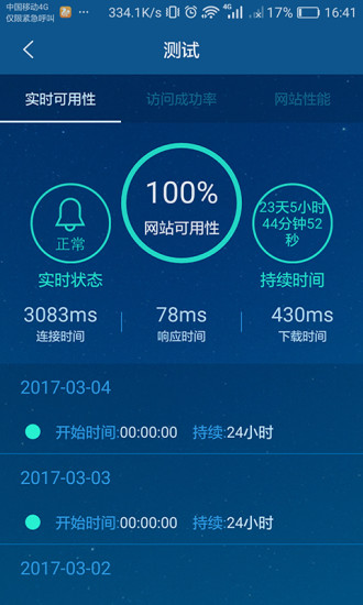 -【站点可用性】监测并记录网站的可访问性、响应时间、下载速度;同时也可监控特定栏目如网站服务、在线办事、互动交流等的可用性。监测数据实时更新,历史记录可追溯,便于用户分析网站性能变化趋势。