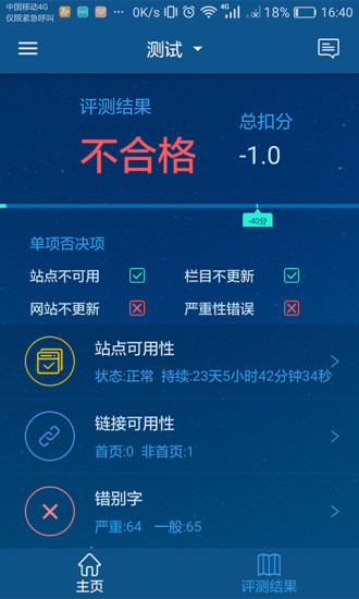 -【网站评测】全面展示网站评测结果。基于全国政府网站普查标准,制定考核指标;通过对网站各监测指标进行分析,合理运算,展示网站群指标及总体评测结果。评测报告详细直观,帮助用户快速了解网站整体表现,为优化改进提供数据支持。