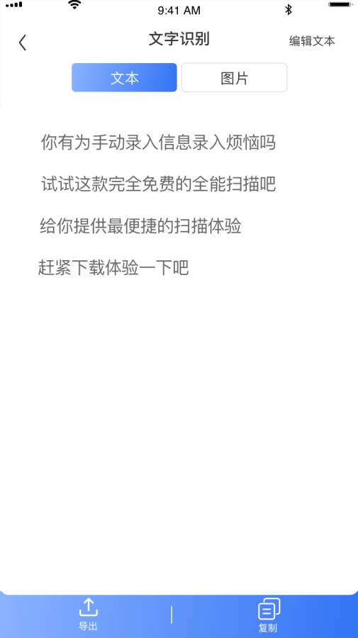 全能扫描大师是一款完全免费的OCR(光学字符识别)软件,能够帮助用户快速、精准地识别图片中的文字内容。无论是纸质文档、手写笔记还是屏幕截图,它都能轻松提取文字并转换为可编辑的电子文本。此外,该应用还支持生成多种格式的二维码,包括文本、链接、联系人、邮箱和WiFi等,用户只需扫描二维码即可一键连接WiFi或快速访问相关信息。无论是个人使用还是商务场景,全能扫描大师都能满足你的多样化需求。