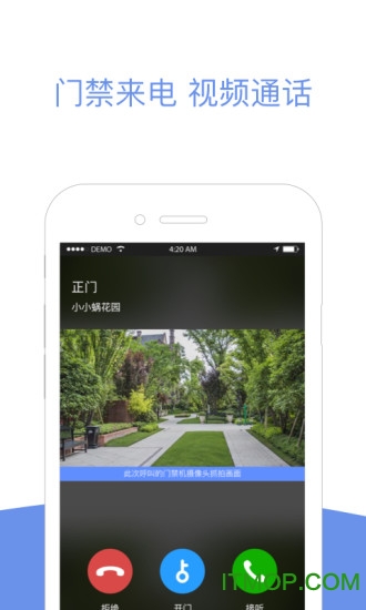 呼叫开门:访客可在门禁机上选择房号或输入您的手机号码,按下确定键后,系统会自动拨打您的手机,您接听后即可远程为访客开门。