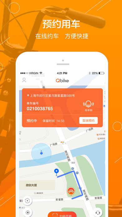 开锁指南:在每辆Qbike单车的车身、车把与锁上都印有专属二维码,您只需用手机app扫描二维码,车锁就会通过蓝牙技术自动打开。系统还支持NFC快速解锁功能,让开锁过程更加便捷高效。