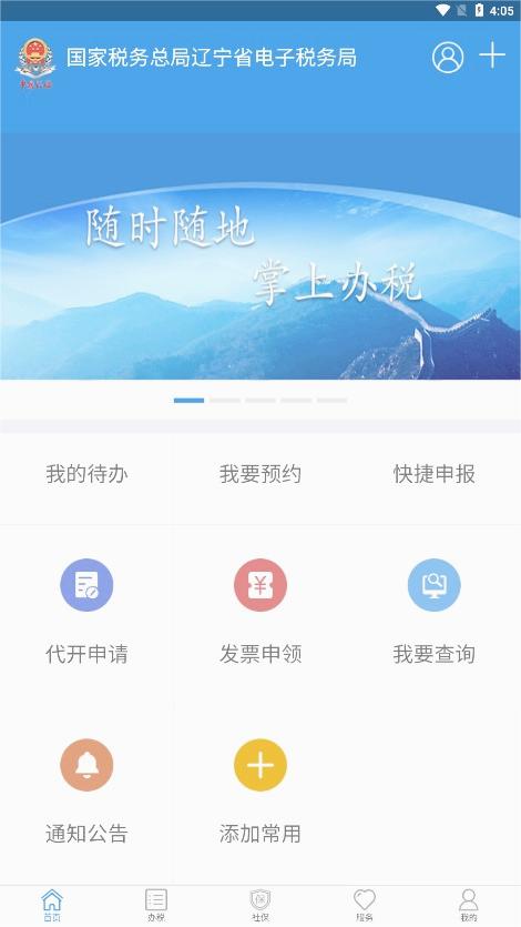 本页面下载安装辽宁移动办税APP,打开软件,在首页点击右上角头像