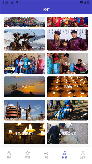 文化专栏详细介绍了蒙古族的传统节日、礼仪习俗和民间信仰等内容。用户可以通过图文并茂的方式了解那达慕大会、敖包祭祀等特色活动,以及蒙古包、马头琴等文化符号的由来。这些内容不仅增长见识,还能帮助用户更好地理解蒙古语中的文化内涵。