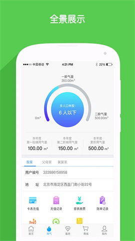 使用北京燃气APP进行充值操作简单快捷:首先打开APP,在【我的】页面点击【我的用户编号】进入账户管理界面。然后添加新的用户编号,系统会发送验证码到注册手机号进行安全验证。验证通过后,在【用气】页面可以查看当前用气量和账户余额,点击【充值】按钮进入充值界面。这里提供多种充值气量选项,用户可根据实际需求选择合适的气量,支持微信、支付宝等多种支付方式,付款成功后气量将实时到账。