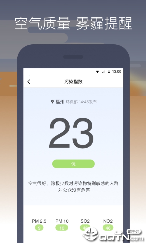 雾霾提醒:实时监测空气质量,当PM2.5等污染物超标时及时提醒,保护你的呼吸健康。