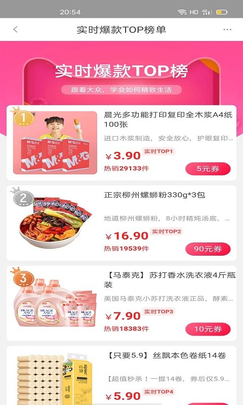 好券惠报APP每天都会为您精心推荐热门商品和特价好物,让您轻松发现心仪宝贝。平台拥有丰富的商品种类,涵盖衣食住行各个方面,所有商品均符合国家质量标准,让您购物无忧。此外,APP还聚合了众多知名品牌,无论是经典款还是潮流新品,都能在这里找到。更有超值秒杀活动,让您以最低价格抢购爆款商品,享受前所未有的购物乐趣。