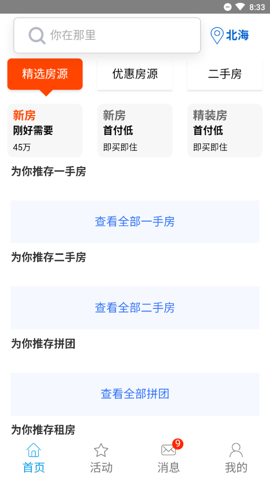 新房折扣:新房团购,免费出车,特惠新盘,享受独家优惠。平台定期组织看房团活动,提供专车接送服务,购房可享开发商直供折扣价。