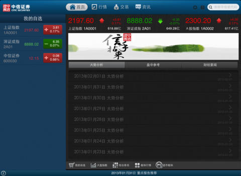 在平板电脑上进行股票交易,操作体验更加流畅便捷,行情数据实时更新,让您随时随地把握市场脉搏。中信证券HD作为一款专为安卓平板优化的证券交易软件,不仅提供完全免费的行情查询和交易服务,还整合了多种实用功能,为用户打造全方位的投资体验。