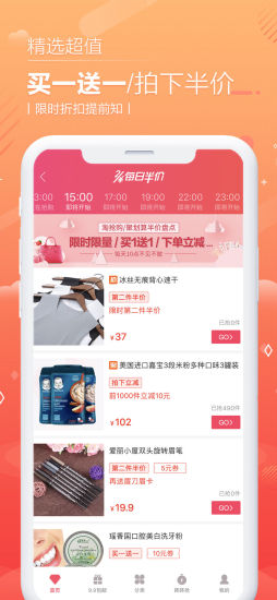总是错过聚划算、淘抢购限时半价?没关系,淘券大师每日为您盘点淘抢购/聚划算限时限量活动商品,买一送一,拍下半价,超高折扣再也不错过啦!更有专属提醒功能,让您不错过任何优惠。