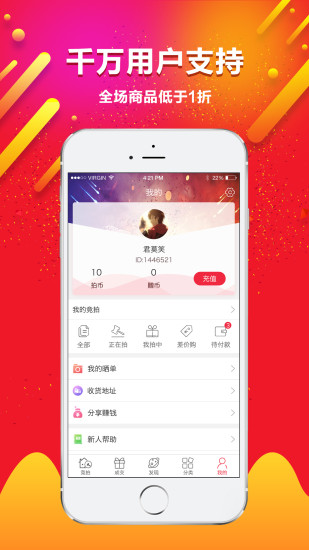 首充优惠让用户获得更多竞拍机会,提高中拍几率,享受更多实惠。