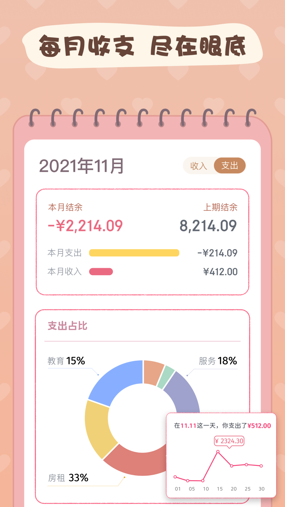 每天随手记一笔,体验记账带来的生活掌控感,让每一分钱都花得明明白白。