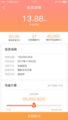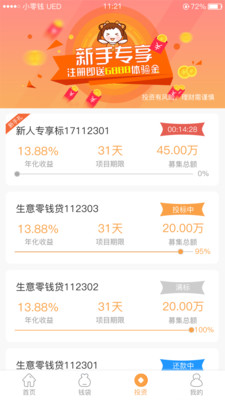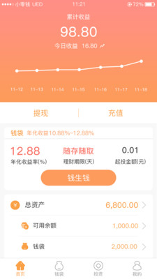 小零钱app以农业供应链金融、银行承兑汇票和车贷房贷等优质资产为依托,打造专业可靠的金融理财平台。平台提供随存随取的活期理财服务,资金灵活周转无忧;同时推出多种期限的定期项目,年化收益率行业领先,让您的闲置资金获得更高回报。无论是短期资金管理还是长期财富规划,小零钱app都能为您提供安全稳健的理财解决方案,助您轻松实现财富增值目标。