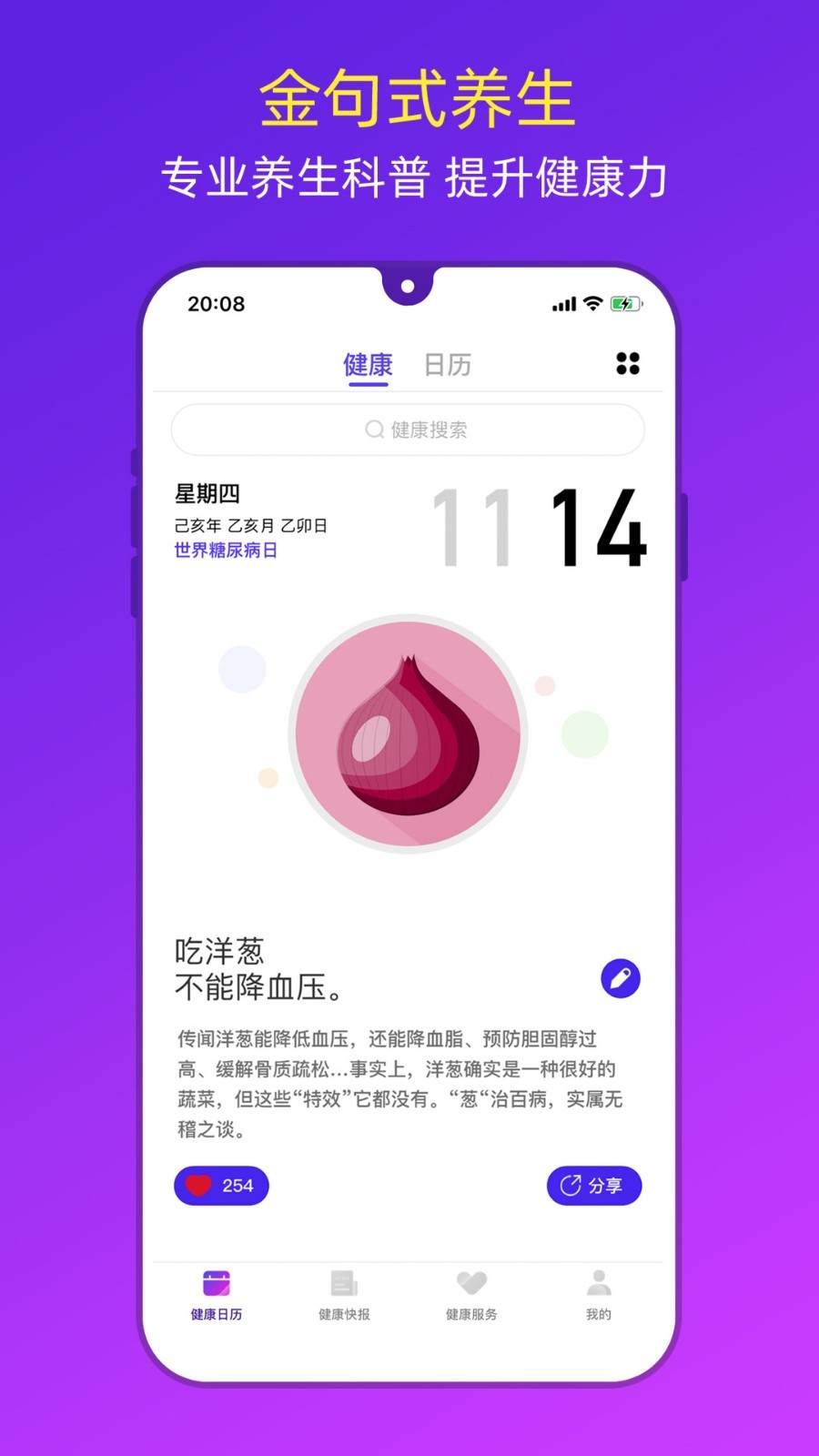 健康日历是一款集日历功能与健康管理于一体的创新应用,为用户提供全方位的健康生活指南。它不仅具备传统日历的基础功能,更融合了丰富的健康科普资讯和个性化养生建议,让用户每天都能获取科学可靠的健康知识。应用汇聚了全球顶尖医学专家团队,打造专业权威的健康内容平台,帮助用户告别不良生活习惯,开启高品质健康生活。无论是日常养生、疾病预防还是健康监测,这款应用都能成为您贴心的健康助手。