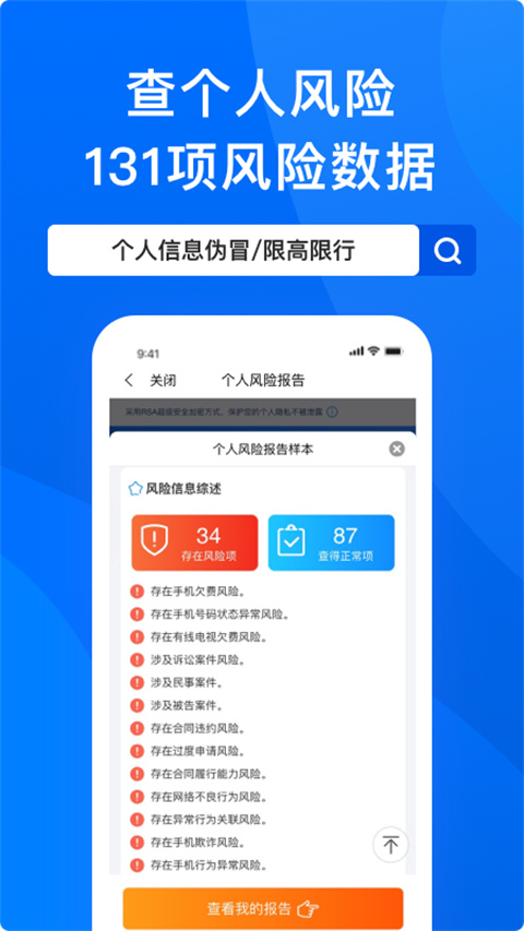 信用查询app是一款专业权威的信用信息服务平台,致力于为用户提供全面、便捷的信用风险管理解决方案。通过该应用,用户可轻松查询个人信用记录、失信违约情况以及各类信用交易信息。只需输入身份证号和真实姓名,系统将在24小时内生成详细的信用报告。该应用不仅能查询信用卡使用记录,还能完整记录个人信用信息,帮助用户全面掌握自身信用状况。最新版本新增信用卡绑定功能,可实时查询多张信用卡的还款日期和到期时间,智能提醒用户按时还款,有效避免因疏忽导致的逾期问题,守护用户的信用健康。