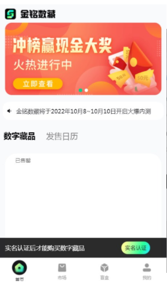 金铭数藏app是一款专注于数字藏品领域的应用平台,汇聚了丰富多样的艺术数藏资源,为用户提供第一手的藏品信息和交易服务。无论是限量版数字艺术品,还是热门文化创意藏品,都能在这里快速获取最新动态。平台以高效、安全为核心,吸引了众多数藏爱好者的关注。通过简洁直观的界面设计和智能推荐系统,用户可以轻松探索心仪的藏品,享受便捷的收藏体验。对于热爱数字艺术的用户来说,金铭数藏app是不可错过的优质选择。