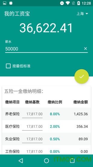 计算缴纳的五险一金:自动根据所在城市政策计算养老、医疗、失业、工伤、生育保险及住房公积金的缴纳金额,让您清楚了解社保公积金支出明细。