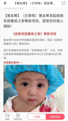 善友筹app是一款专注于大病筹款领域的公益服务软件,致力于帮助用户解决医疗费用难题。平台不仅提供便捷的筹款服务,还配备了专业的一对一解答团队,随时为您解决筹款过程中遇到的各种问题。无论您是需要帮助的患者家属,还是想要奉献爱心的热心人士,都可以在这里找到适合自己的参与方式。有需要的用户欢迎前来下载体验!
