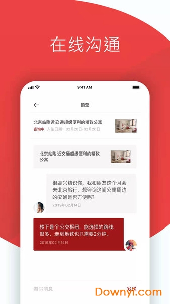与房客在线互动,充分沟通获得更优体验,内置即时通讯工具支持文字、语音、视频多种沟通方式