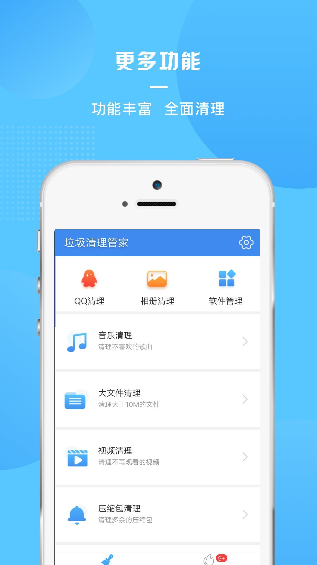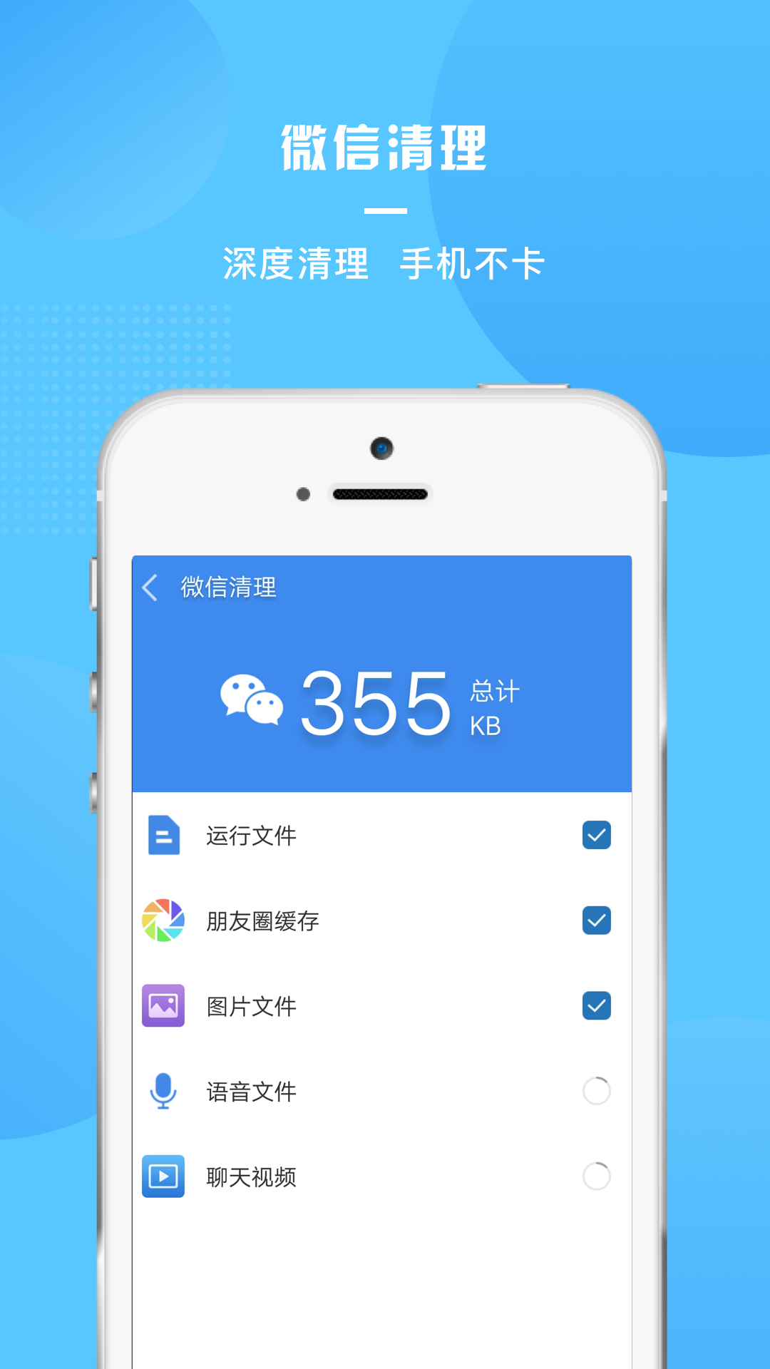 【微信、QQ专清】针对微信、QQ深度优化,可智能清理聊天中产生的图片、视频、表情包等,保留重要内容的同时大幅提升应用运行速度。